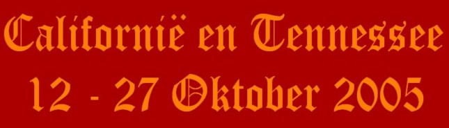en met 27 oktober 2005. De eerste week verbleven we in San Francisco, Californie en de tweede week verbleven we in Tennessee. Terwijl we in San Francisco waren en behalve de stad zelf bezochten, bezochten we ook Twin Peaks, National Park 'Big Sur' en Carmel. Adembenemende natuur! Terwijl we in Tennessee waren, bezochten we Gatlinburg en Pigeon Forge en Cherokee, een Cherokee Village in Noord Carolina. |